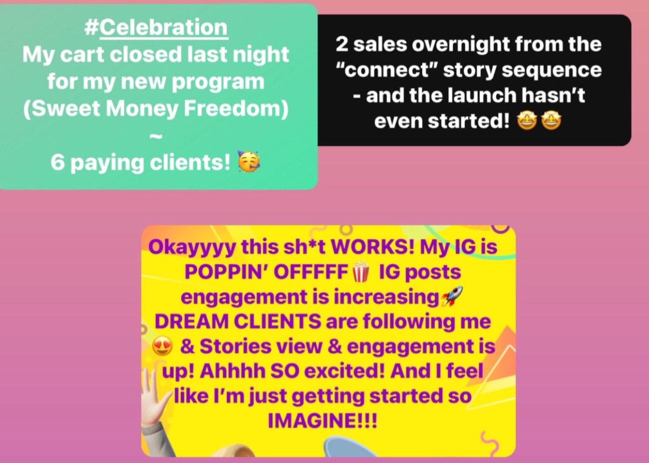 💸 sell in IG Stories and convert dream clients so that you start waking up to daily sales notifications (without feeling like a robot)